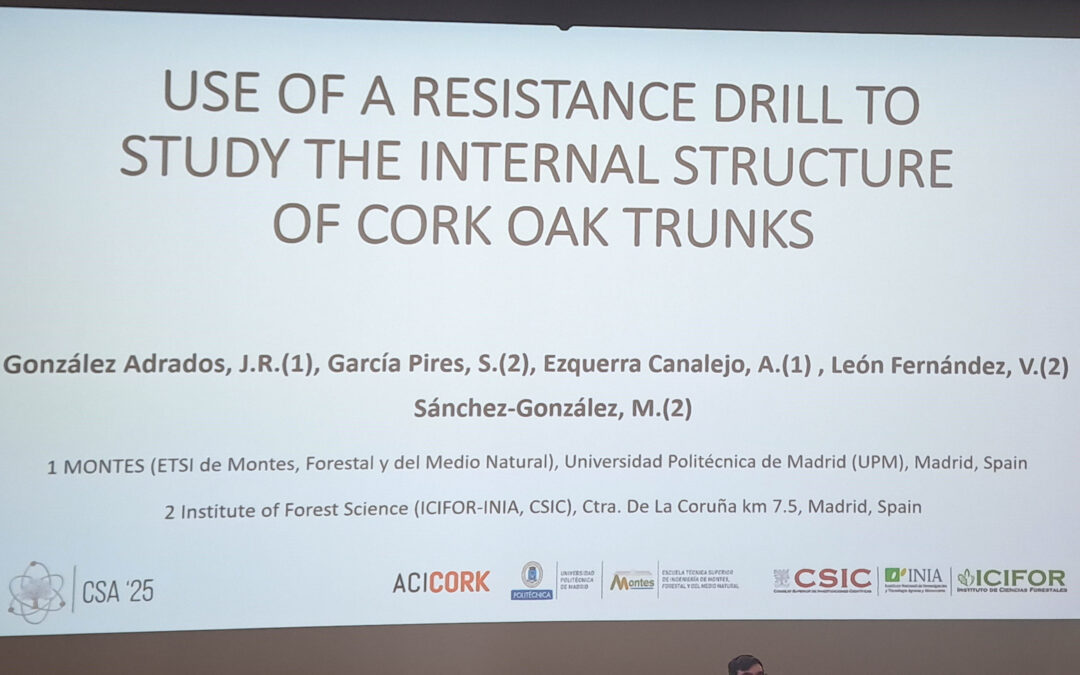 Lisbon, 13 October 2025 – As part of the Cork Science and Applications 2025 (CSA25) conference, held from 13 to 15 October in Lisbon and jointly organised by the University of Aveiro and the University of Lisbon, an oral presentation entitled ‘Use of a resistance drill to study the internal structure of cork oak trunks’ was given as part of the Acicork project.